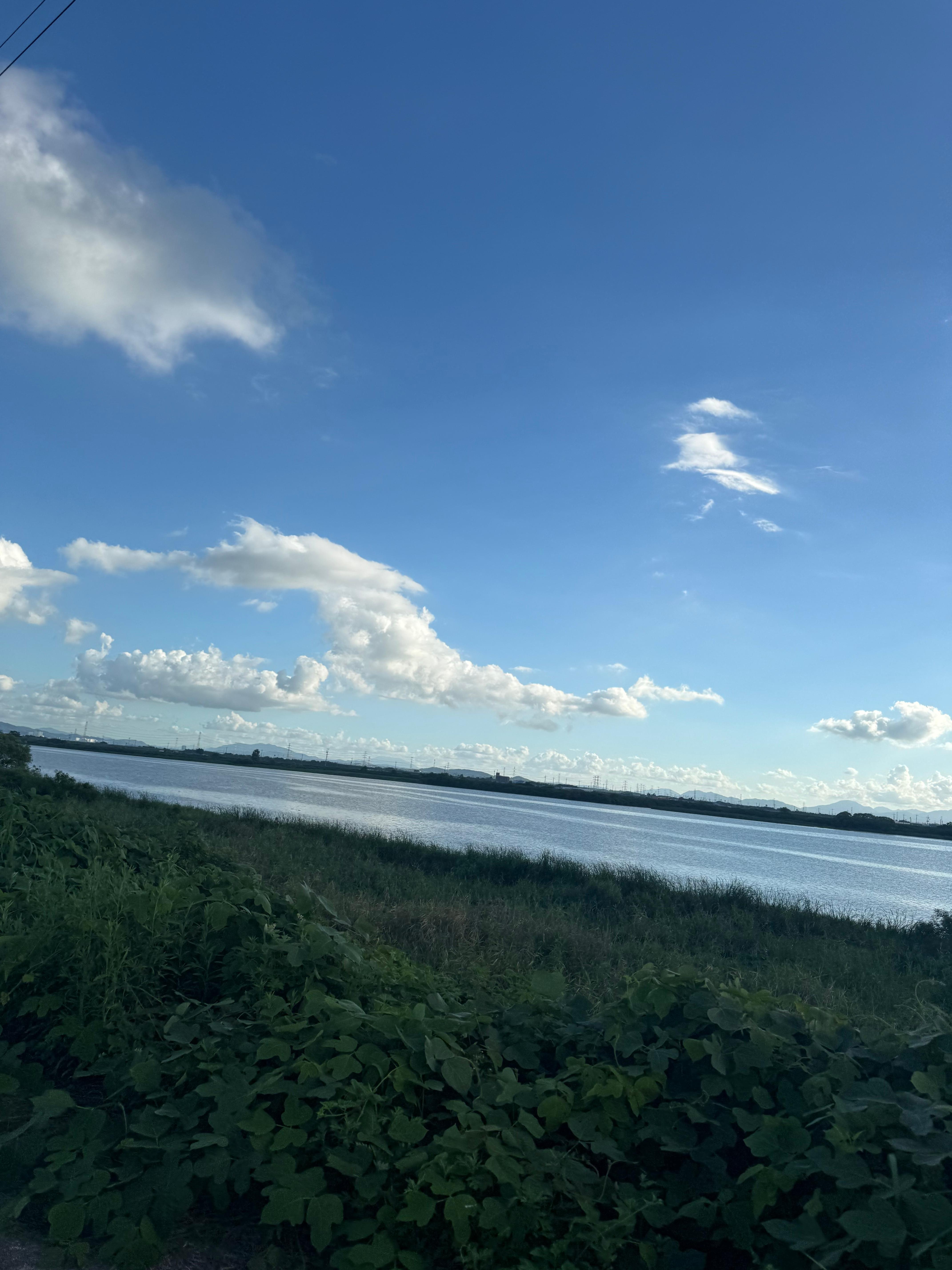 강변엔 초록빛 갈대와 풀들이 가득했고, 곳곳에 낚싯대를 드리운 사람들의 모습이 보였습니다.